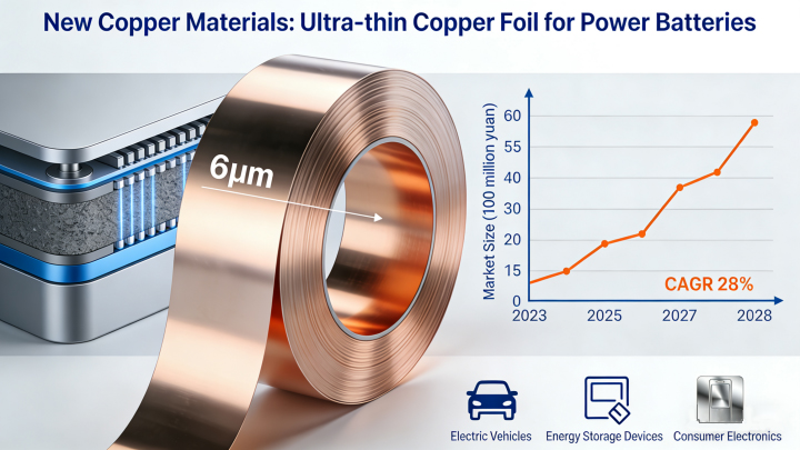 নতুন জ্বালানি খাত নতুন প্রবৃদ্ধির চালক হয়ে উঠেছে। নতুন শক্তির যানবাহন এবং লিথিয়াম ব্যাটারির দ্রুত বিকাশ উচ্চ-শেষের তামা সামগ্রীর চাহিদা বাড়িয়েছে। 2024 সালে, চীনে নতুন শক্তির যানবাহনের আউটপুট বছরে 37.4% বৃদ্ধি পেয়েছে, যা সরাসরি সম্পর্কিত তামা সামগ্রীর চাহিদা বাড়িয়েছে। বোটং নিউ মেটেরিয়ালের মতো কোম্পানিগুলি সফলভাবে 4.5-মাইক্রন উচ্চ-শক্তির লিথিয়াম ব্যাটারি কপার ফয়েল তৈরি করেছে, যা নেতৃস্থানীয় ব্যাটারের সরবরাহ শৃঙ্খলে প্রবেশ করেছে।