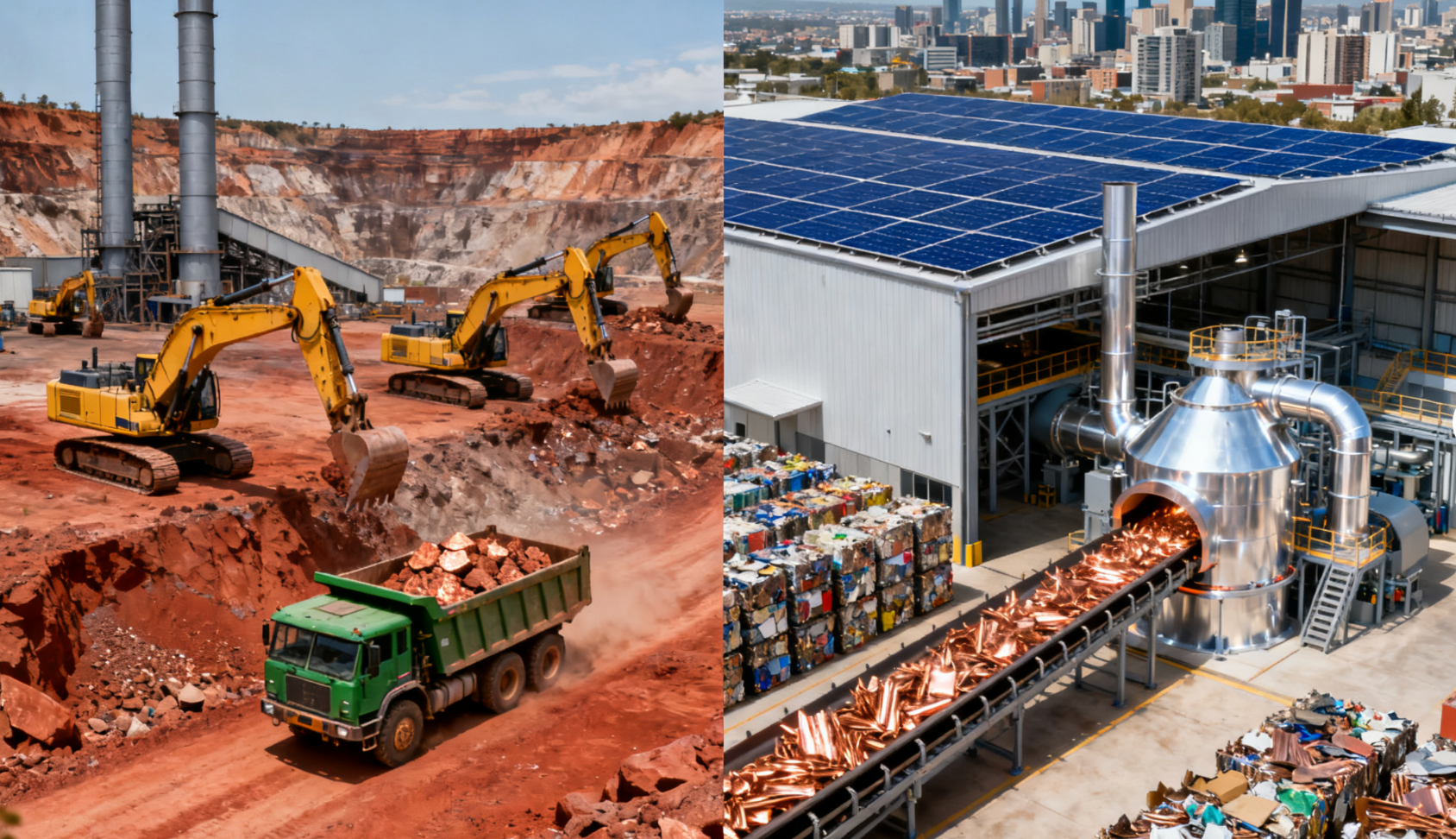 | রিসোর্স বেস | আমিআমি ভার্জিন উপকরণ (কপার আকরিক) | পুনর্ব্যবহৃত সামগ্রী (শহুরে খনি) |