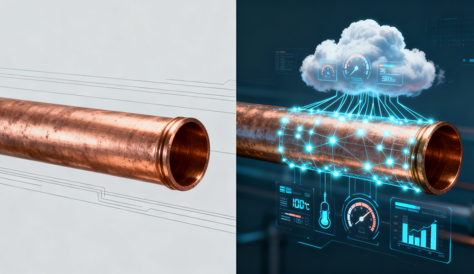 শতাব্দী ধরে, মূল মান তামার নল এর ভৌত বৈশিষ্ট্যের মধ্যে রয়েছে: চমৎকার তাপ পরিবাহিতা, জারা প্রতিরোধ ক্ষমতা এবং নমনীয়তা। এটি একটি নিষ্ক্রিয় "নালী" ছিল যার অবস্থা শুধুমাত্র তখনই লক্ষ করা যায় যখন একটি ফুটো ঘটে বা একটি বাধা তৈরি হয়। যাইহোক, ইন্টারনেট অফ থিংস (IoT) এর তরঙ্গের অধীনে, একটি শান্ত বিপ্লব ঘটছে: তামার টিউবটি একটি নীরব শারীরিক সত্তা থেকে একটি বুদ্ধিমান ডেটা নোডে রূপান্তরিত হচ্ছে যা সেন্সিং, যোগাযোগ এবং এমনকি আগাম সতর্কতা জারি করতে সক্ষম। পরিচয়ের এই পরিবর্তনটি তামা টিউব শিল্পের জন্য দুটি সম্ভাব্য ভবিষ্যৎ নিঃশব্দে বর্ণনা করছে: একটি মানসম্মত শারীরিক পণ্য সরবরাহ করে চলেছে, অন্যটি ডেটা পরিষেবাগুলিকে মিশ্রিত করে এমন একীভূত সমাধান সরবরাহ করে।