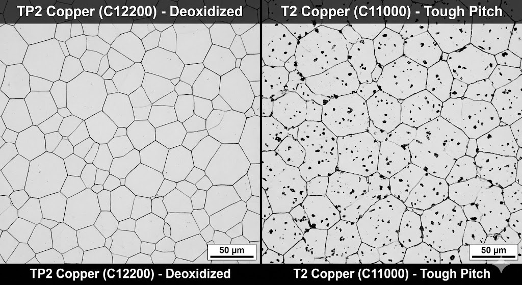 TP2 তামার প্রাথমিক তাৎপর্য এর মধ্যে রয়েছে জোড়যোগ্যতা . ঐতিহ্যগত "কঠিন পিচ" তামা (যেমন T2) অক্সিজেনের ট্রেস পরিমাণে ধারণ করে। হাইড্রোজেন-সমৃদ্ধ বায়ুমণ্ডলে যখন T2 উত্তপ্ত বা ঢালাই করা হয়, তখন এটি "হাইড্রোজেন ক্ষয়"-এর শিকার হয়, যা মাইক্রোস্কোপিক ফাটল এবং কাঠামোগত ব্যর্থতার দিকে পরিচালিত করে।